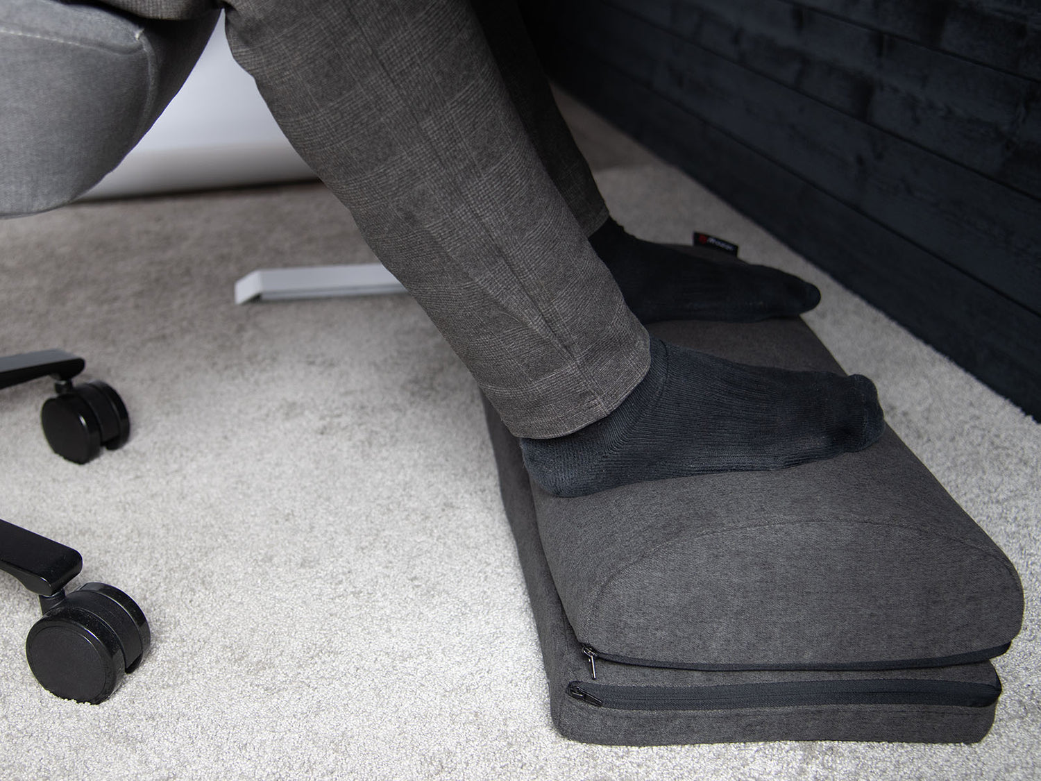 長時間の作業の中でよい姿勢を保つためには、フットレストもおすすめです。フットレストでの足の位置の改善により、腰痛や肩こりの減少につながります。